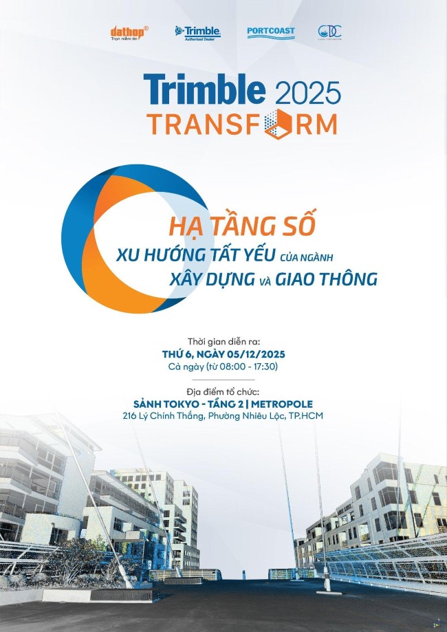 Hội thảo Trimble Transform 2025 với chủ đề “Hạ tầng số – Xu hướng tất yếu của ngành xây dựng và giao thông” sẽ được diễn ra vào ngày 05/12/2025.