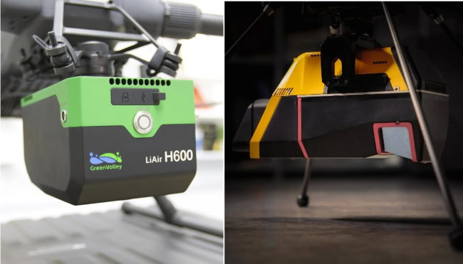 Các giải pháp UAV LiDAR chất lượng cao như GVI H600 (bên trái) và YellowScan Voyager (bên phải) được cung cấp từ Đất Hợp.