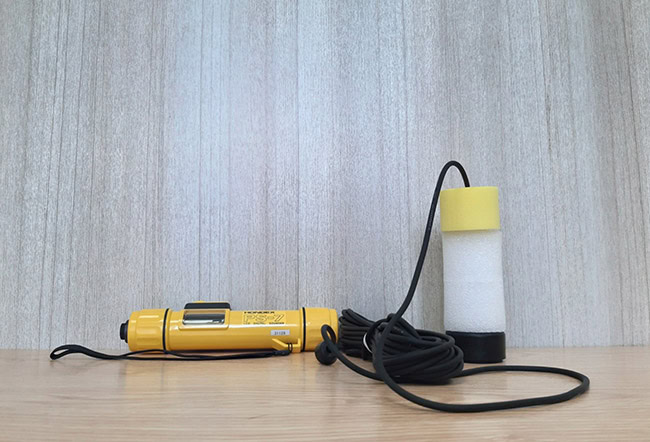 Thiết bị đo chiều sâu hồ nước Hondex PS-7FL được trang bị thêm đầu dò rời bên ngoài kèm dây cáp tín hiệu.