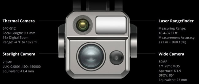 Khi phối hợp với camera góc rộng 50MP (1/1.28″ CMOS, khẩu độ f/1.9, góc nhìn 85°) và camera nhiệt 640×512, UAV EVO Max 4N cung cấp hình ảnh quang học và nhiệt chi tiết theo thời gian thực.